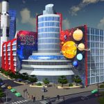 The Sagan-Tyson Center for Space boasts an impressive collection of labs and offices for your city’s brightest astronomers and astrophysicists, a rooftop observatory with a small-diameter telescope, a spacious planetarium with the latest in projection technology, several great exhibits on the history and future of space exploration and the nature of the cosmos, and a full-size mock-up of a Saturn V rocket from NASA’s Apollo program. Pluto included!