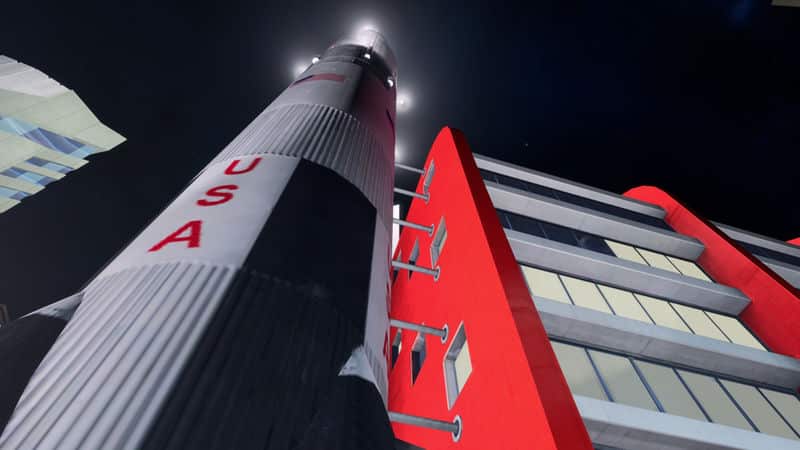 *Towering above the city at 110.6 meters (363 feet), the Saturn V rocket is 1:1 scale, and gives an idea of just how big these rockets were.