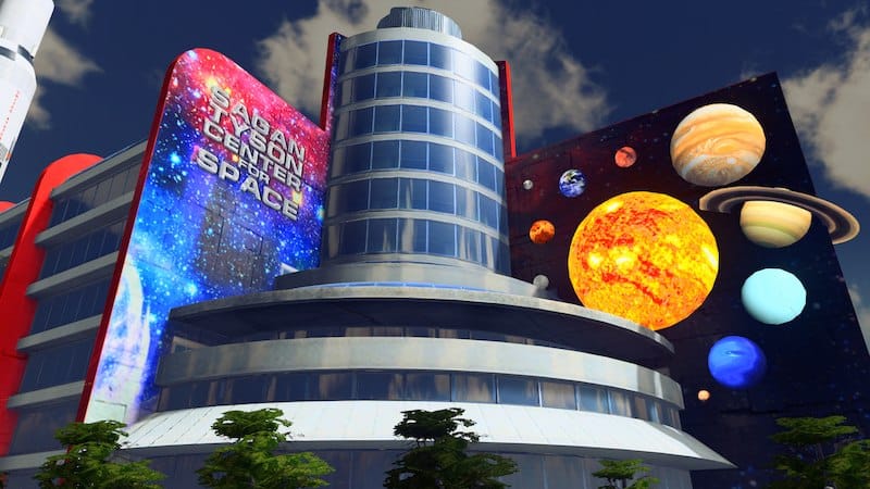 The Sagan-Tyson Center for Space boasts an impressive collection of labs and offices for your city’s brightest astronomers and astrophysicists, a rooftop observatory with a small-diameter telescope, a spacious planetarium with the latest in projection technology, several great exhibits on the history and future of space exploration and the nature of the cosmos, and a full-size mock-up of a Saturn V rocket from NASA’s Apollo program. Pluto included!
