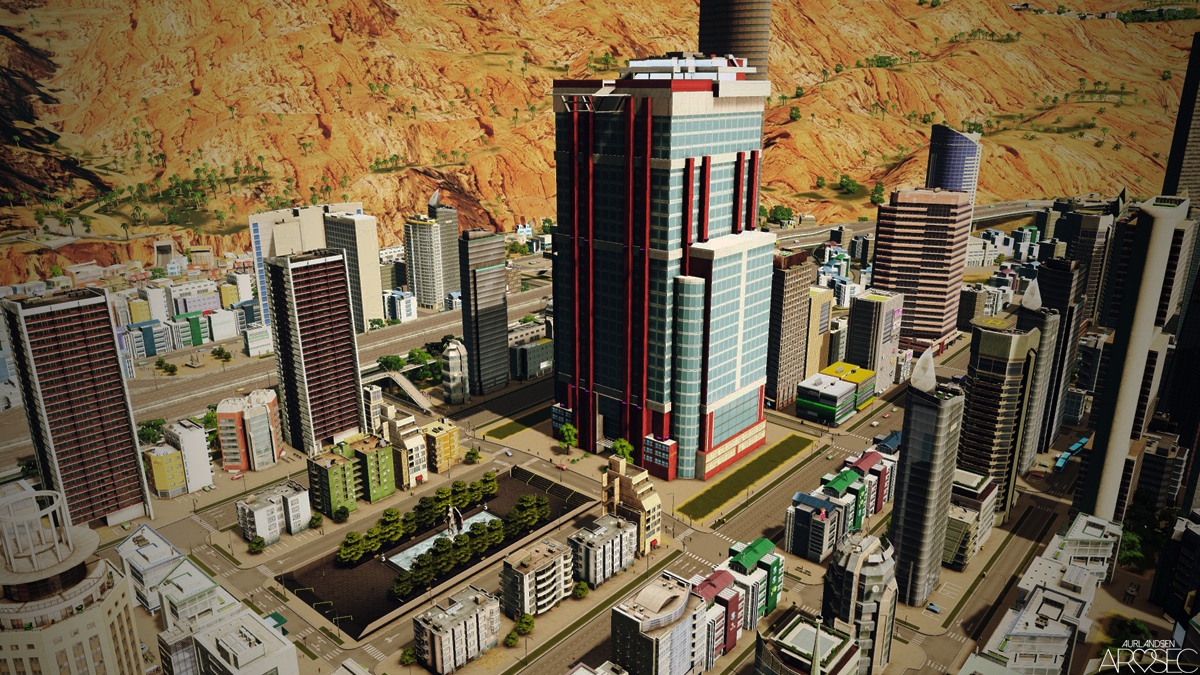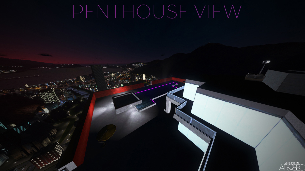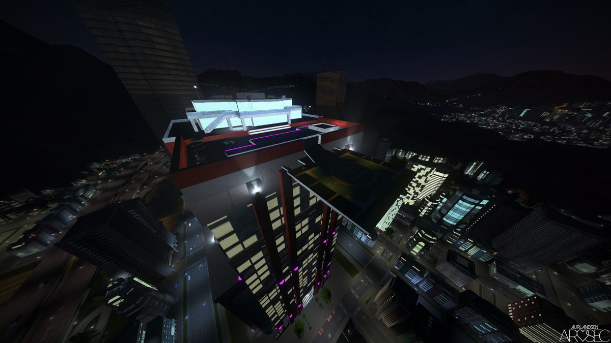 Saints HQ from Saints Row: TT and Saints Row IV. Modelled with penthouse, pool, and landing pad.