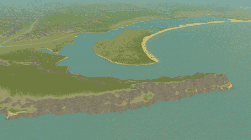 Used the merged heightmap from terrain.party. Most of the buildable areas are smoothed out. Roughly accurate highways and waterways.