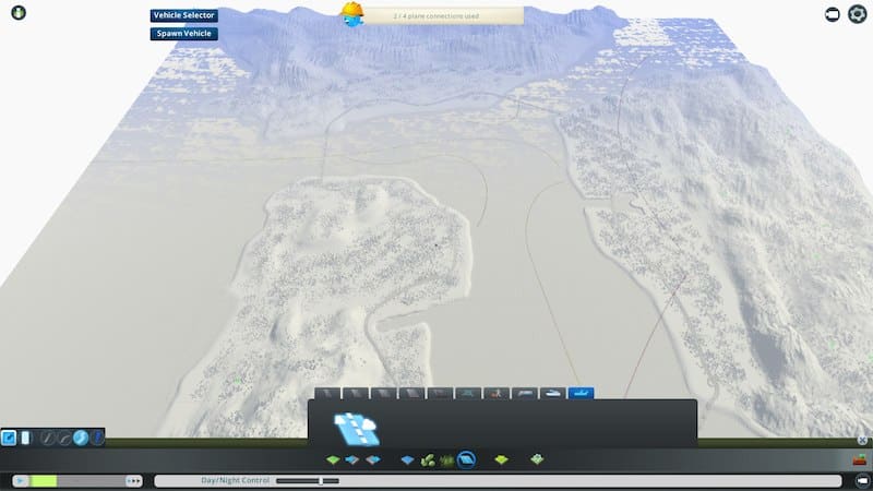 The map size and its boundaries generally match those of the game. There’s the large area on which SF is built, with a few of its hills, including those on which Coit Tower and Lombard Street sit and Twin Peaks. The highway goes south towards the inaccessible area of Silicon Valley, passing the salinas, before coming around into the Oakland area, with a pre-made inlet, and on to Marin, where it meanders until crossing the bay back over to SF. The land is covered in wild and standard conifers; ore can be found in the mountains, whilst oil and fertile land can be found north Oakland and inner-city areas respectively.