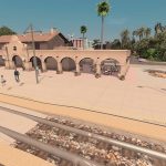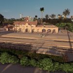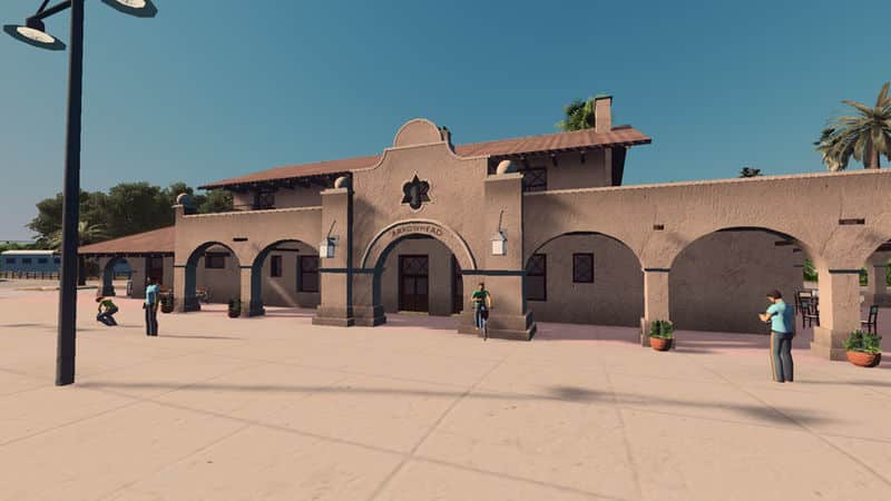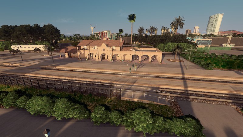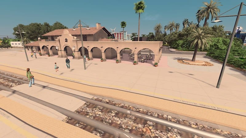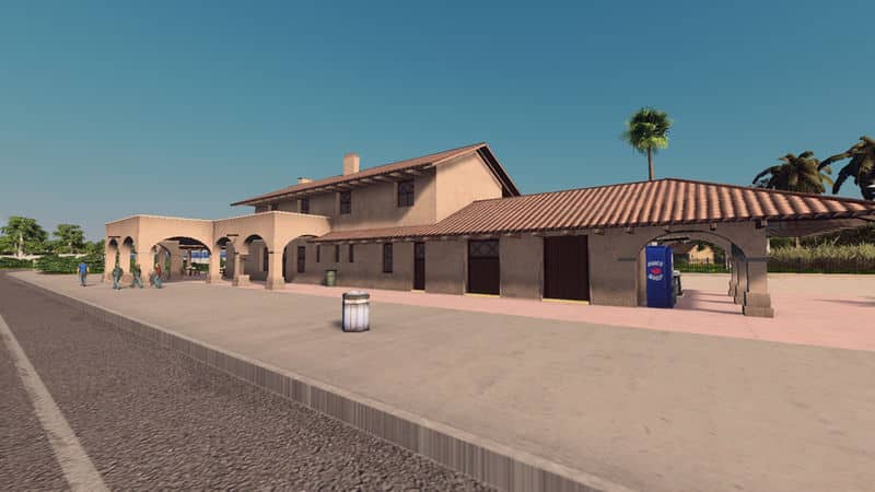 This is a modified version of the Santa Barbara station, custom made for the Arrowhead Junction collaboration. This means the arch leading to the platforms reads “Arrowhead” instead of “Santa Barbara”. Other changes include limited props and plants to give some decorating freedom. Like the original, this station features a functional back entrace, a wheelchair ramp, and two functional platforms*.