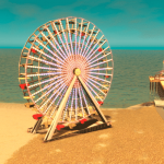Pacific Wheel – The original Pacific Wheel was listed on eBay with half the proceeds from the sale donated to the Special Olympics. It had 20 gondolas. The Pacific Wheel measures 85 feet (26 m), and the vantage point at the top is more than 130 feet (40 m) above the pier. Pacific Park claims that the Pacific Wheel is the world’s only solar-powered Ferris wheel.