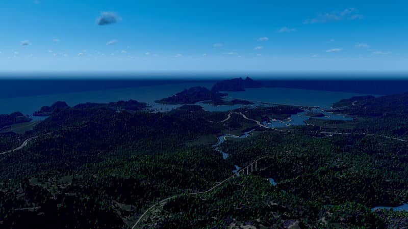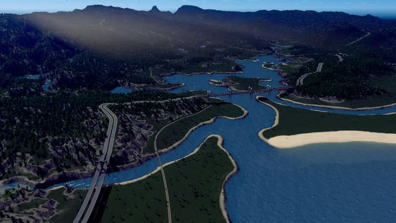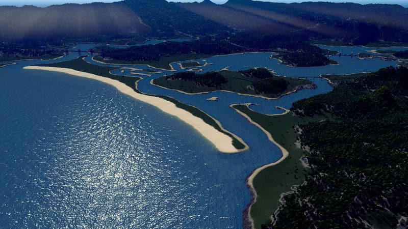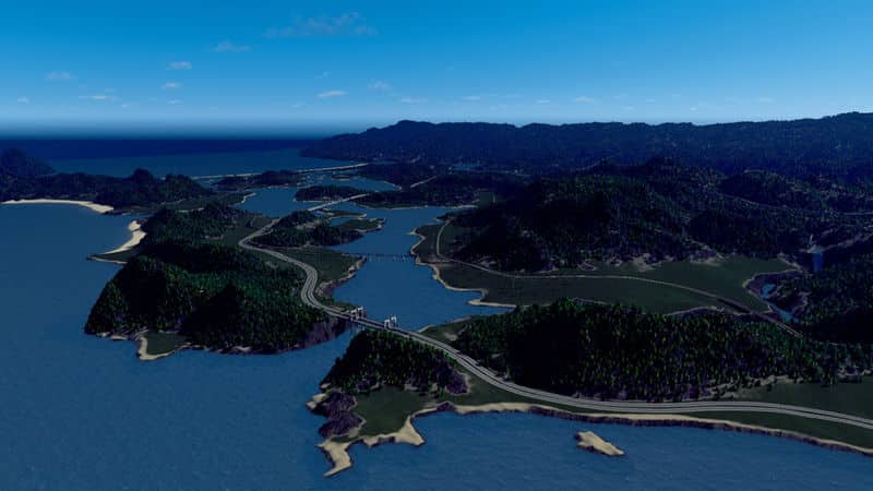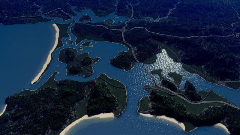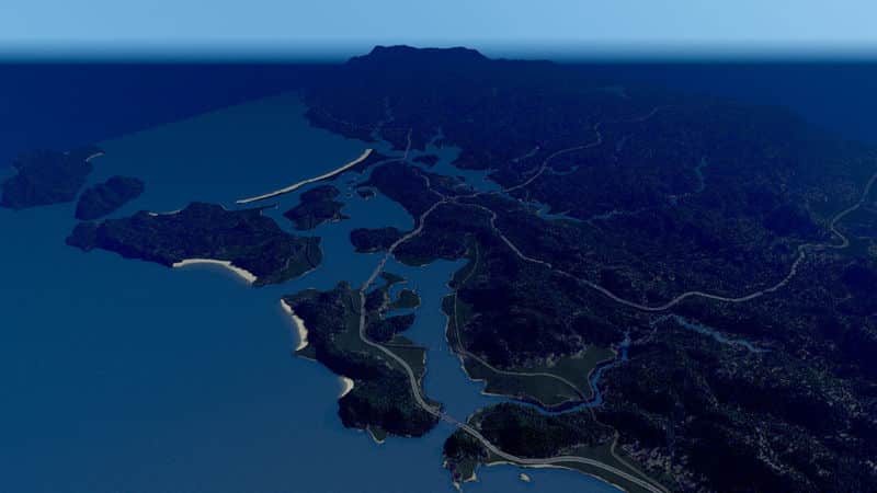 São Vitória is a fictional Brazlian inspired map with fairly hilly terrain in somewhat of an archipelago, and lots and lots of trees. Down the mountains a few small streams tumble into the bays, providing the possibility for constructions of dams.