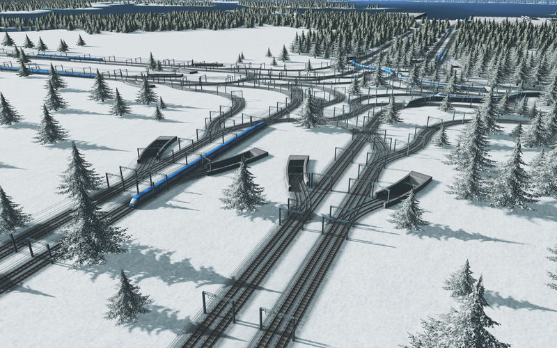 All sixteen tracks are accessible from any other direction on any other track. Amazing, huh? Maybe. This asset is ideal for smaller trains, or trams, of only a few carriages. Larger trains have a higher chance of blocking the paths of other trains, but it is nothing too serious.