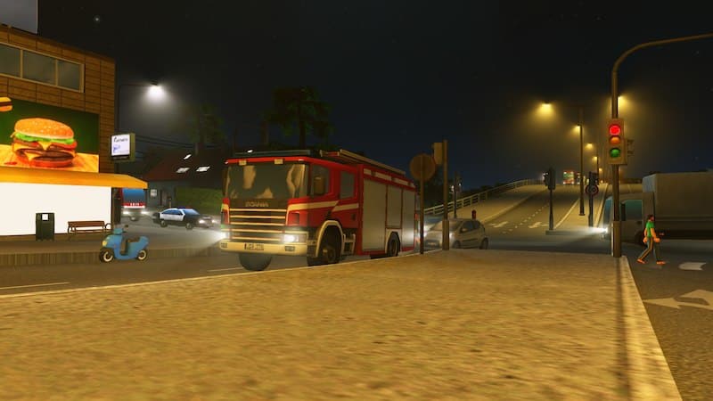 Model has 7k tris, but it should not impact performance very much, because fire trucks are spawned rarely if not least out of all emergency services, so you will have only a few or none of them in your city at a time.
