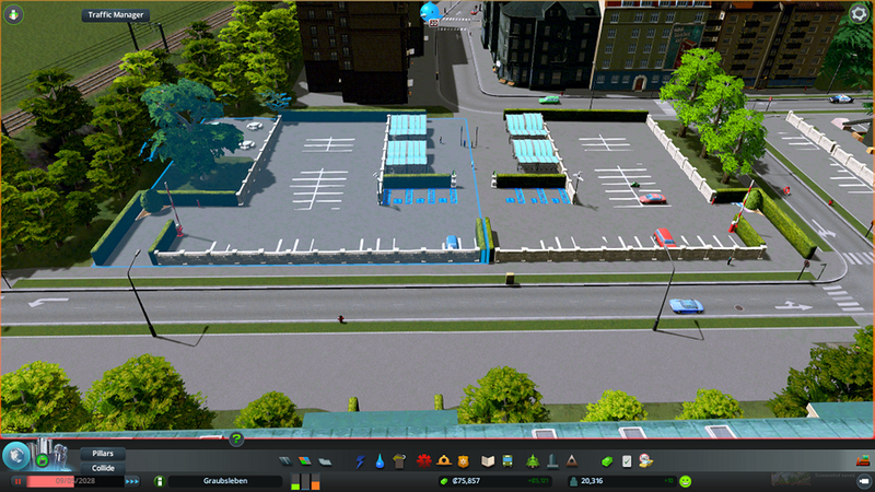 It has several parking spaces, and a center place for bikes. People will also gather at certain places like in a normal park. The combined width is 13 same as many schools, so it fits perfectly.
