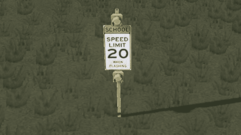Sign to indicate reduced speed for a school zone, with flashing lights