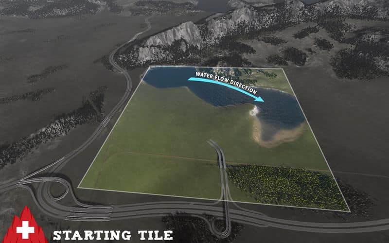 Definitely not a flat map. But you will find enough flat areas to build even quite large city surrounded by steep alpine peaks. Or maybe you want to build a couple smaller towns and mountain villages? If so, this is perfect map for you.