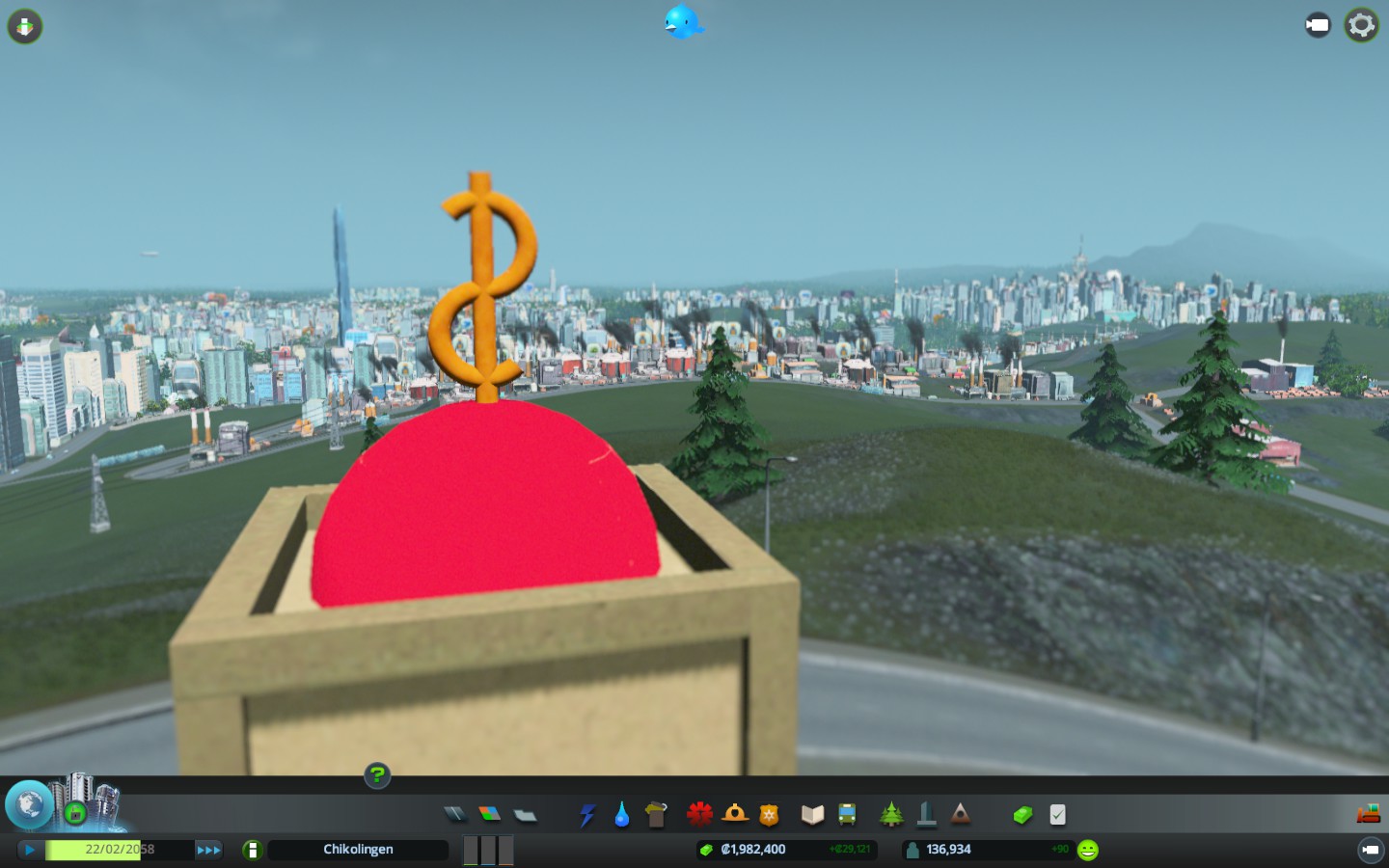 Bring a landmark from Duckburg to your city! Here’s Scrooge McDuck’s Money Bin from Disney’s “Duck Tales”. It’s best on a little hill in the office block.