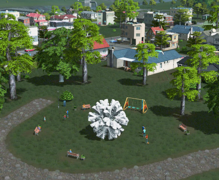 A large public art piece featuring a geometric shape derived from fractal math. This is a prop, not a building.