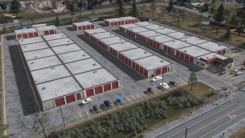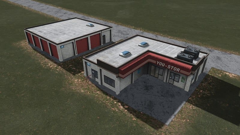 Two buildings (an office and a locker/warehouse unit) which you can use to build self-storage businesses. Both buildings are RICO-enabled for low-density commercial (units have 1 workplace and the office has 3). If you don’t use Ploppable RICO mod then they just appear as parks.