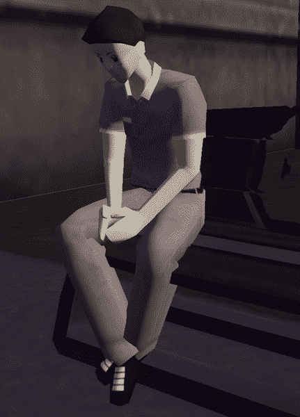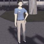 Uses young adult male animation and behaves like a blue collar male.