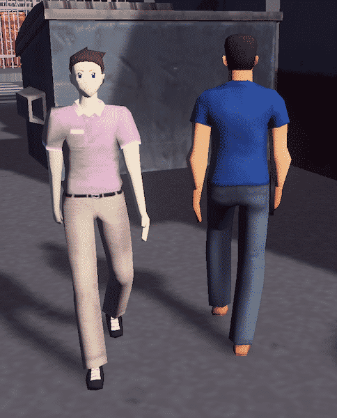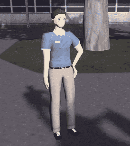 Uses young adult male animation and behaves like a blue collar male.