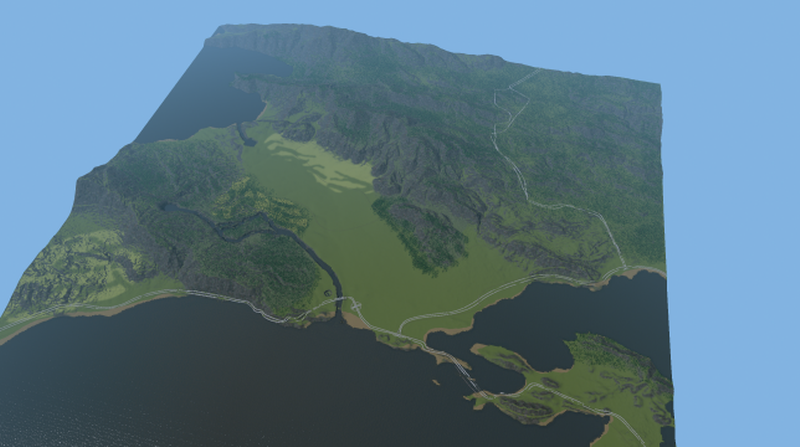 Serenitee, a map that is based in Greece.(heightmaps, thank you) This map has lots of land in a valley (which has lots of farmland) and is sorounded by mountains which have lots of ore, trees, and oil. this map also includes a large hole with some water meant for putting sewage in.(you know, if you dont want to pollute the river) (also, if it concerns anyone, the font I used in the main pic is not mine)