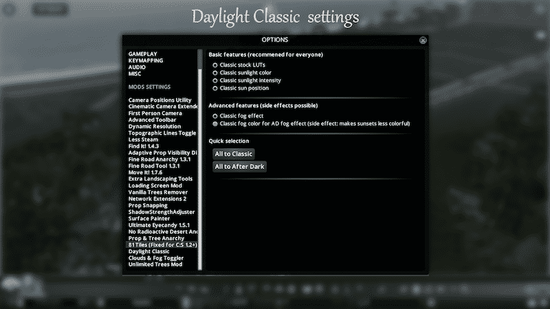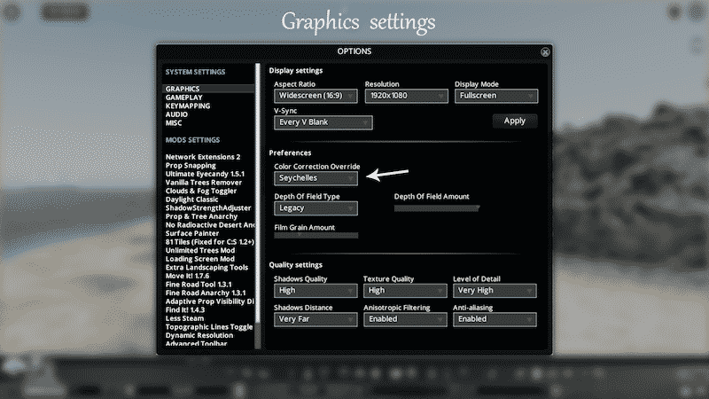 4. Play! (Dont forget set eyecandy, adaptive prop visibillity, daylight, LUT and shadow strenght settings like in screenshots – for best results)