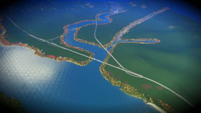 * Accurate representation of the Huangpu River with shipping channels throughout