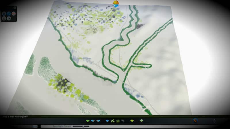 * A range of hills and gullies, though smoothed to allow ease of construction and city planning