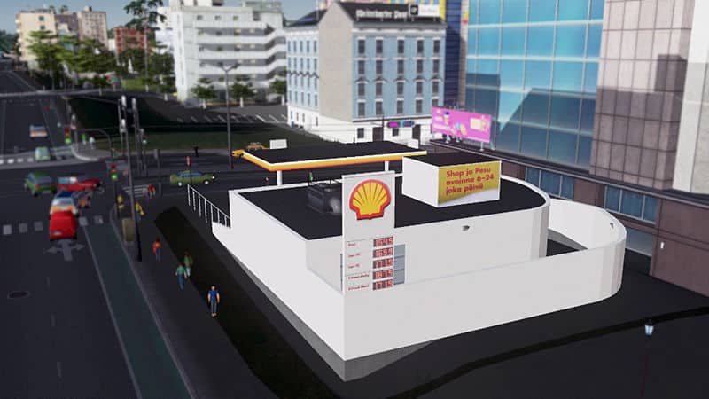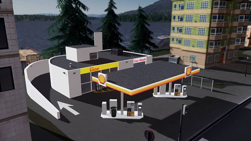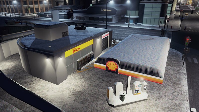 3×4 sized gas station with a shop and car wash. Asset inspired by a Shell gas station in Helsinki, Finland.