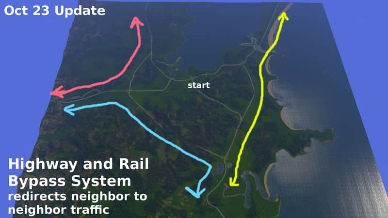 If you started a city already, not a problem. Just take a look at the new image labeled update and see the bright colored lines that show where those new bypasses are, and just add them into your city ?
