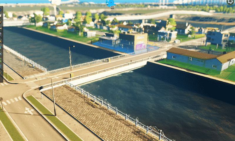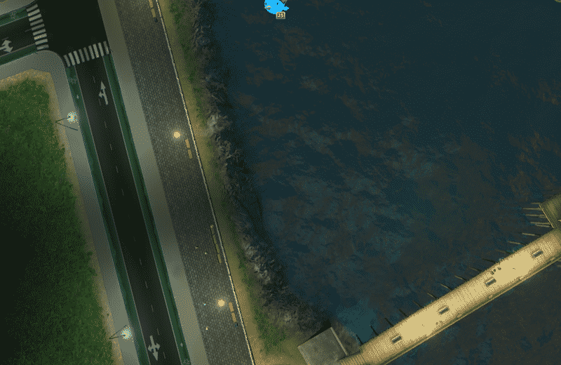 A simple walkway intended for river banks and sides of canals. You can try it also as a space filler next to 8 or 16 tiles wide buildings, looks nice sometimes. There’s a real pedestrian walkway running through this asset, so it can easily be connected to your network of pedestrian paths.