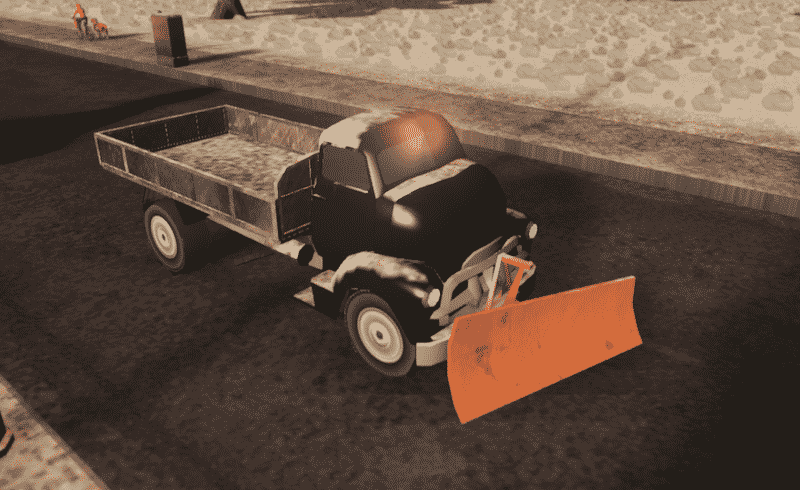 Works fine with AD, works like a real snowplow so requires snowfall.