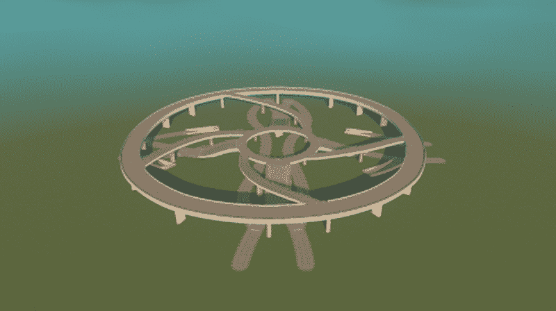 You must add exits to the top ring, otherwise the structure is just an efficient 2 way intersection. But its design allows you to customise its exits in any way you like.