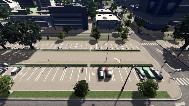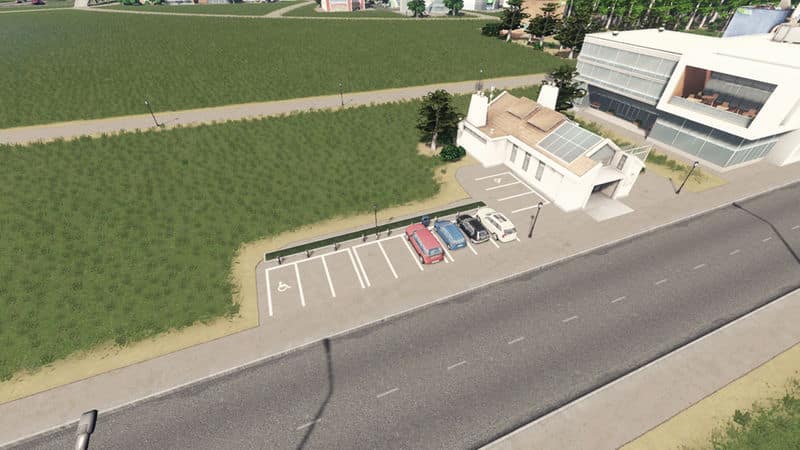 simple parking lot 1×3 with lawn to place along the road. Useful to create larger parkings.