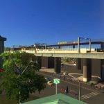Here comes a single station in the concrete style, which doesn’t have two exterior platforms but one central platform.