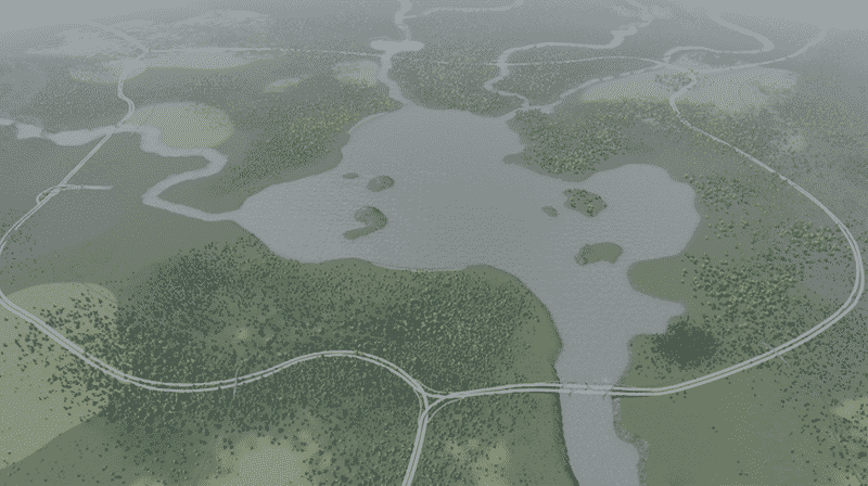 Sirocco is a fictional lake map, with each type of resource spread through a large area. Be free to grow your city throughout the lake shore or go with it up to the hills.