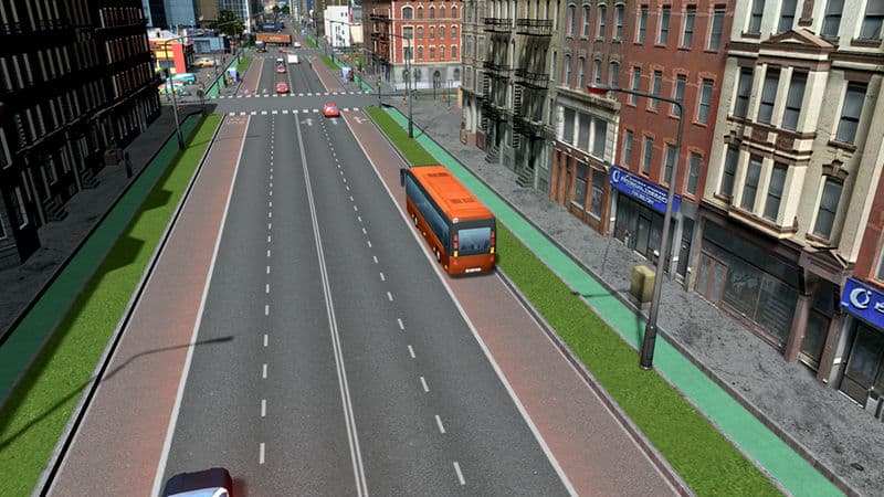 Six-Lane Road with Bike and Bus Lanes, Decorative Grass