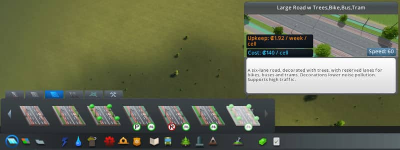 - Available in Large Road, Bus and Tram tabs, after your town has reached a population of 5,000 cims.