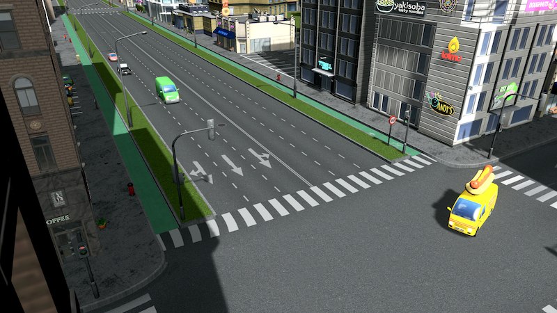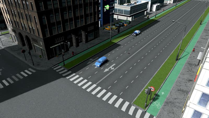 Six-Lane Road with Bike Lanes and Decorative Grass