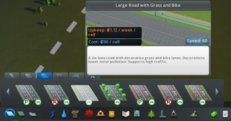 - Noise Pollution: same value as the standard six-lane road with decorative grass.