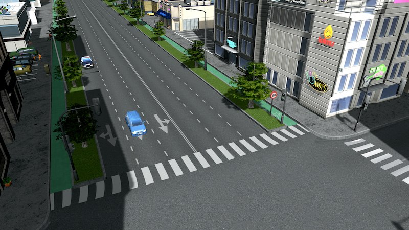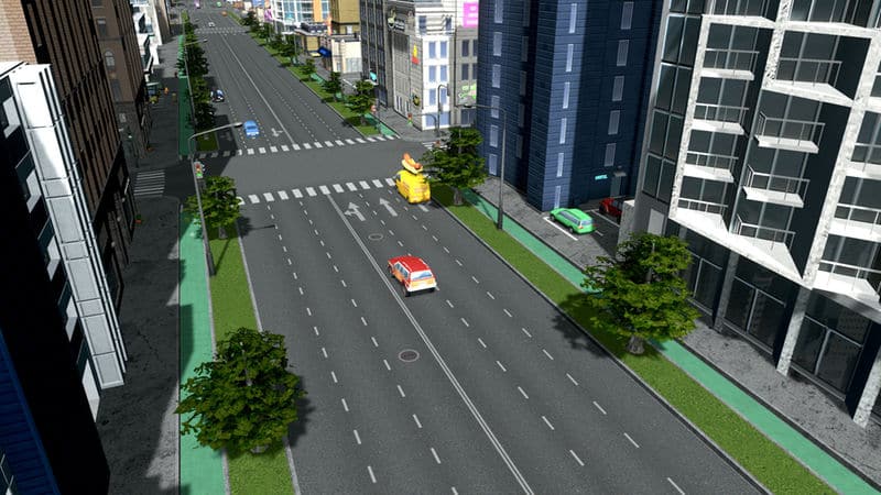 Six-Lane Road with Bike Lanes and Decorative Trees