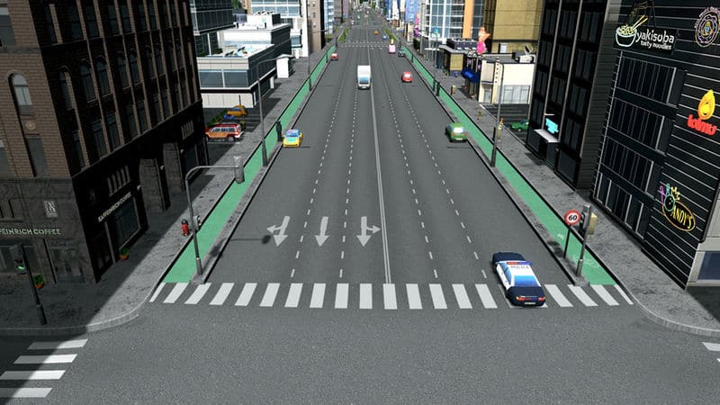 Six-Lane Road with Bike Lanes and Parking Spaces
