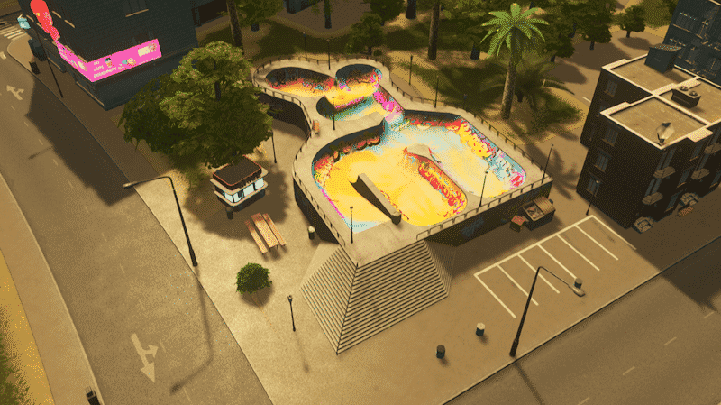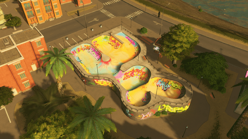 There’s never enough skateparks in the city! So I made another skatepark asset, this time inspired by real and legendary bowl in Marseille, France – “skatepark du Prado”. In real life the bowl is actually on the ground level, but I had some trouble to do that in the asset editor (not sure why), so I had to raise the bowl above the ground and add stairs.
