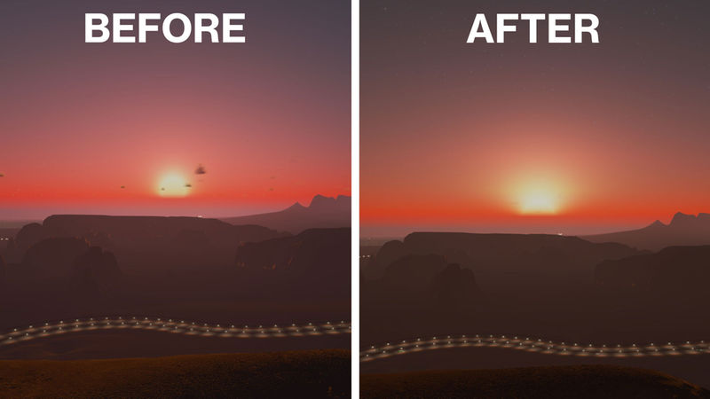 - Stars intensity. Since the skybox I made already features a huge amount of stars, I removed the game stars entirely, as they were not very fitting with the new skybox.