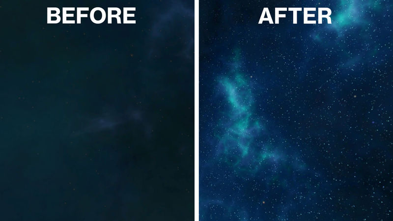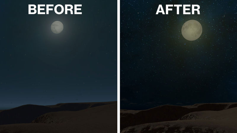 - Outer space intensity. The night sky is brighter, showing more stars/nebulae. See 3rd image.