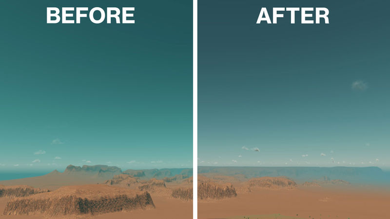 Comparison shots were made using a tropical biome.