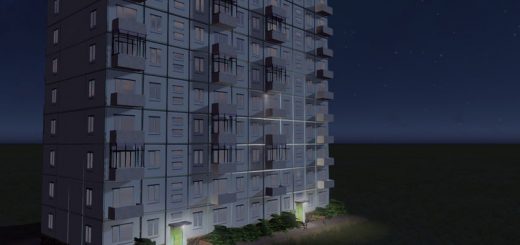 But thats not all. If you are using a moving sun Mod you will be able to aprechiate the house at night as well. Also since the interiours are actually modeled the light will not look flat but like actuall lit rooms.