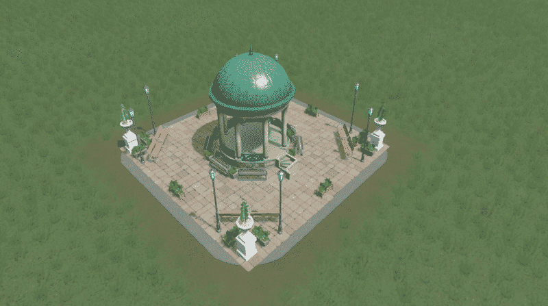 A small plaza with a gazebo, benches and planters. Looks great in wealthy residential or office plazas.