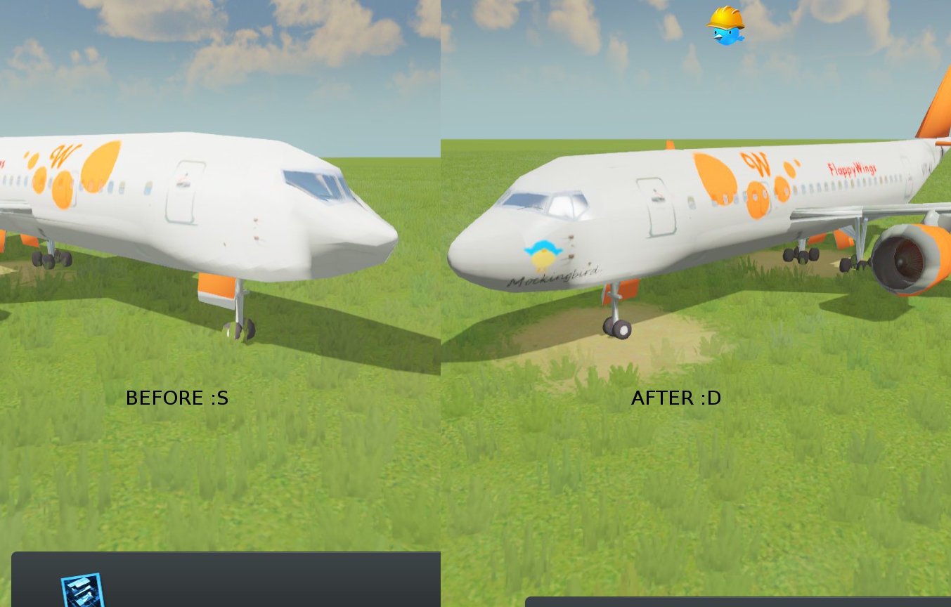 – entirely redone the nose of the aircraft, no more deformity (see screenshots for comparison) and a well-better looking