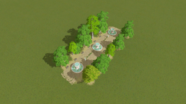 A 4×8 plaza surrounded by trees where your citizens can come to relax and hear the water pouring. No toilets around though!