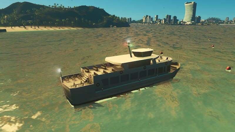 The small ship carries passengers in a comfortable setting as it steadily cruises along the lakes and rivers to its destination. Cims would enjoy its calm environment and its suitable features as they ride in it on their ferry journeys.