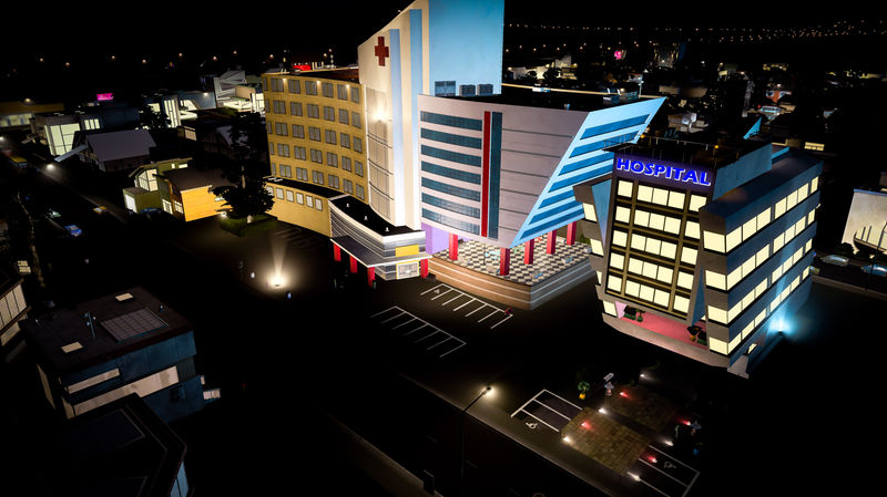 Costs 30000 and maintain 3000, ambulance count: 20, patient capacity: 300, healtcare radius: 1000 and uses template milestone as default. Size 2×5. Also ready for night.