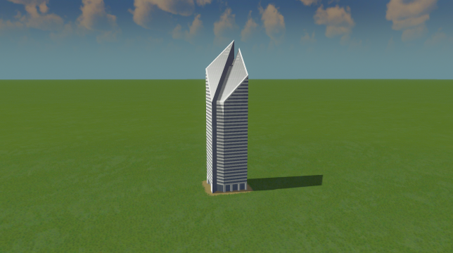 The building was scaled down to half its actual size to fit the scale of Cities: Skylines.