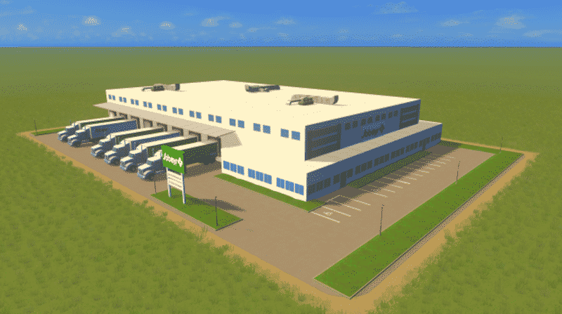 The final design for this Centre was based on the Anixter Inc. Distribution Centre in Alsip, Illinois. Sobeys Distribution Centres operate in Vaughan ONT, and Terrebonne QC. Food Distribution Centres like these are the last stop for your food before they are delivered to the retail store where you buy your groceries. These sites are essential to growing cities and therefore made sense to make this a Unique Building. Any growing city would need to have one in order to service the many grocery stores in your city. This building also includes an office and parking for your CIM employees.