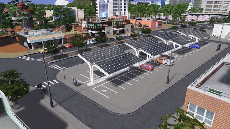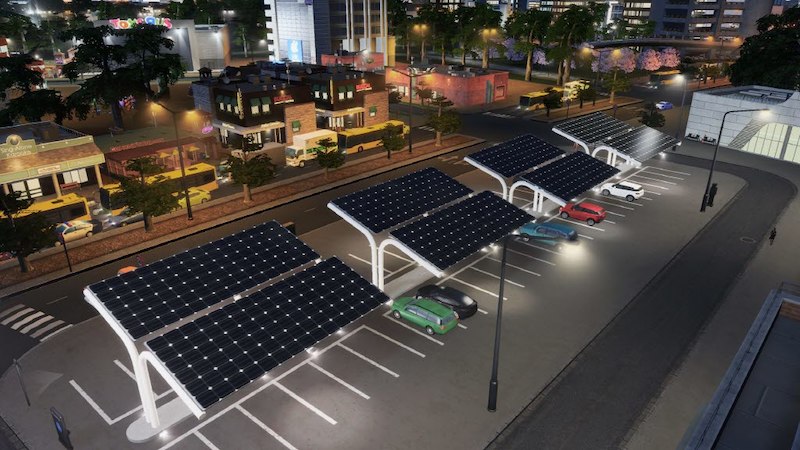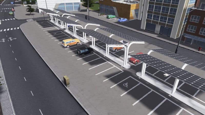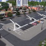 Parking lot with solar panels.